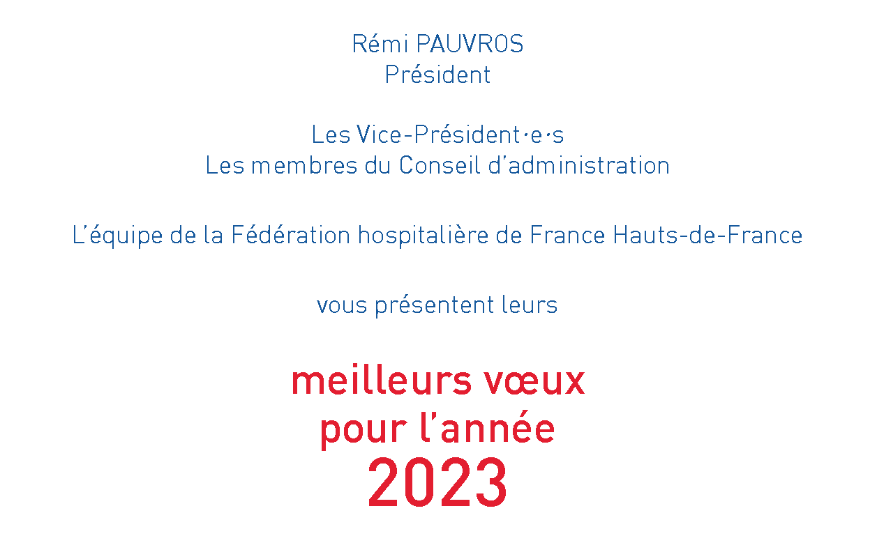 Date de publication : 2 Janvier 2023 (Mis à jour le 10 Janvier 2023) Partager LinkedIn Twitter Facebook Email Imprimer La FHF Hauts-de-France vous présente ses meilleurs vœux pour 2023 !