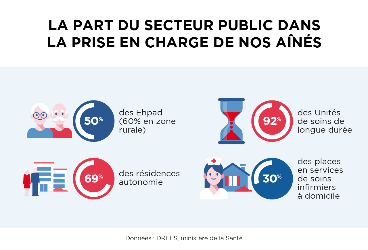 Fortement morcelée sur les territoires, encadrée par des tarifs qui lui permettent difficilement de se rénover, subissant une iniquité en matière de cotisations sociales par rapport au secteur privé, l’offre médico-sociale publique doit être soutenue pour permettre aux EHPAD publics, maillons essentiels de l’offre territoriale, de poursuivre leur mission d’accessibilité au plus grand nombre.
